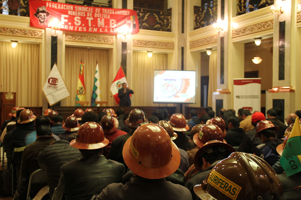 Como parte del programa global de Responsabilidad Social de la Cámara Minera del Perú, en convenio con el Ministerio de Minería y Metalurgia de Bolivia, se desarrolló una capacitación y posteriormente una mesa de trabajo con la Federación Sindical de Trabajadores Mineros de Bolivia – La paz, 2018.